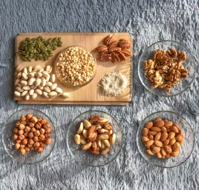 아몬드, 호두, 아마씨, 치아시드에는 건강한 지방과 항산화 물질이 풍부하여 염증 수치를 낮춰줍니다.