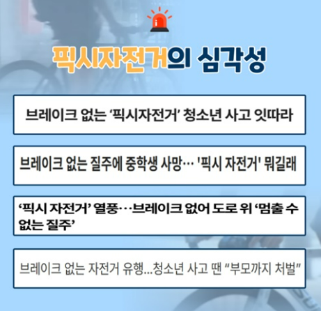 도로 위 시한 폭탄 '픽시' 자전거... 도로교통법 고친다.