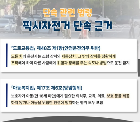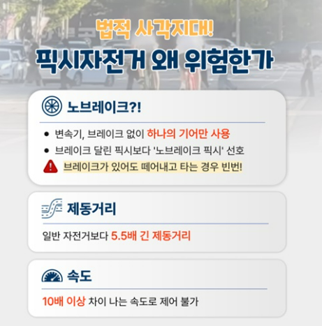 특히 미성년자가 브레이크 없는 픽시를 탈 경우 「아동복지법」에 따라 부모나 보호자도 방임 행위로 처벌받을 수 있어 각별한 주의가 필요합니다.