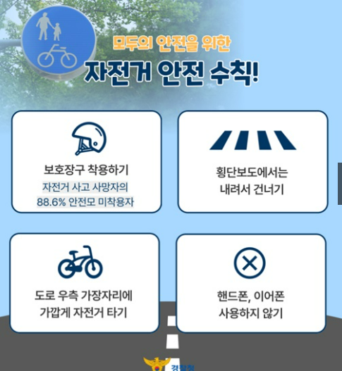 또한 주행 중 핸드폰이나 이어폰 사용은 절대 금물입니다. 음악을 들으며 타거나 휴대폰을 보면서 주행하면 주변 상황 인지 능력이 떨어져 돌발 상황에 제대로 대처할 수 없습니다.