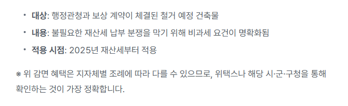 철거 예정 건축물의 경우에도 비과세 기준이 명확화되어 불필요한 세금 분쟁을 예방할 수 있게 되었습니다.
