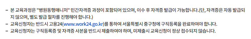 만약 국가자격증 취득이 어렵다면 민간 기관에서 제공하는 병원 동행 매니저 교육 과정을 이수하는 것도 좋은 방법입니다. 예를 들어 한국직업평가진흥협회 등에서는 민간 자격증을 발급하고 있으며, 온라인 무료 수강 프로그램도 운영하기 때문에 진입 장벽이 낮습니다.