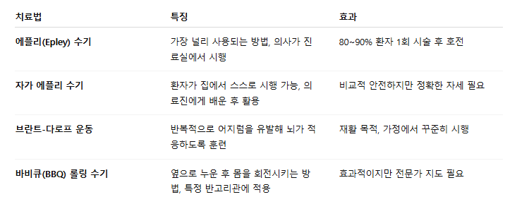 대표적인 이석 정복술은 다음과 같습니다.