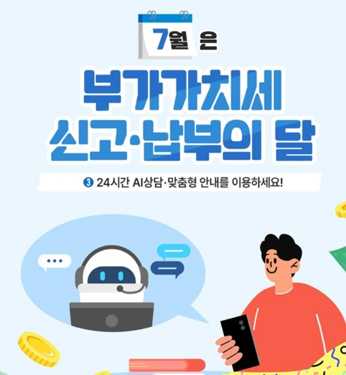 그중 7월은 1월부터 6월까지의 매출과 매입 내역을 정산해 신고하는 중요한 시점입니다. 부가세 신고 기간은 매년 7월 1일부터 7월 25일까지로, 이 기간 안에 신고를 마치지 않으면 가산세가 부과될 수 있습니다.