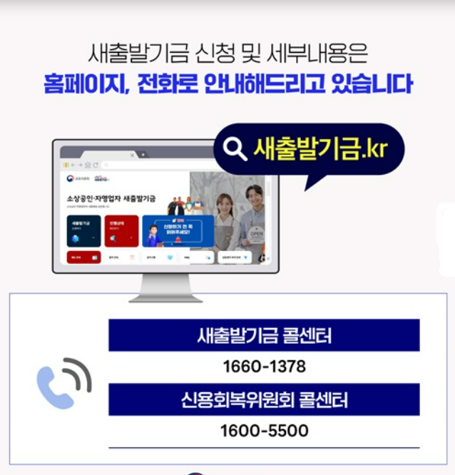 새출발기금 신청 및 세부내용은 홈페이지, 전화로 안내해드리고 있습니다.