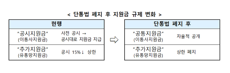 단통법 폐지로 인해 가장 눈에 띄는 변화는 단말기 지원금 상한선이 완전히 없어진다는 점이다. 지금까지는 이동통신사의 공시지원금과 그 15% 이내의 추가지원금만 제공 가능했지만, 앞으로는 유통점이 자유롭게 지원금을 책정하고 소비자에게 제공할 수 있다. 이로써 이른바 불법 지원금으로 불리던 고액 보조금도 합법적인 영역으로 편입된다. 단말기 가격을 넘어서는 지원금도 법적으로 제재받지 않게 된다.
