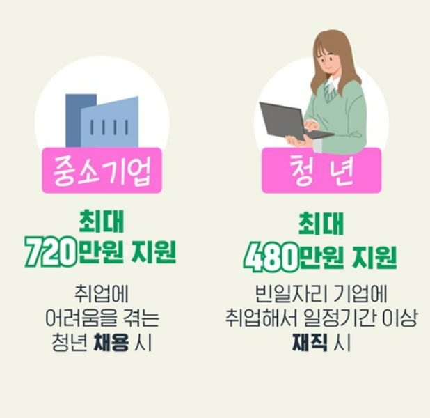 중소기업에 취업한 청년에게 최대 480만 원의 근속 인센티브를 직접 지급합니다.