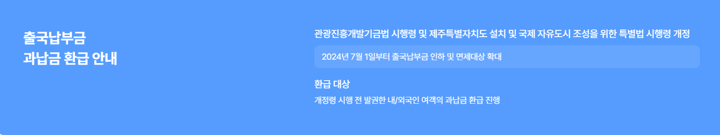 그런데 2024년 6월, 정부가 관광진흥개발기금법 시행령을 개정하면서 출국납부금 제도에 큰 변화가 생겼습니다. 첫째, 금액이 기존 10,000원에서 7,000원으로 인하되었습니다. 둘째, 면제 대상이 기존 만 2세 미만에서 만 12세 미만으로 확대되었습니다. 즉, 이제는 초등학생 이하 어린이는 출국납부금을 내지 않아도 되며, 성인도 3,000원을 덜 내게 된 것입니다.