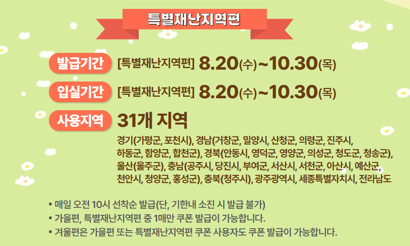 올해는 특히 가을편과 겨울편이 진행되며, 특별재난지역을 위한 추가 혜택도 제공됩니다.