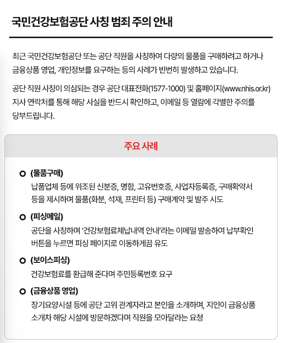 국민건강보험공단은 절대 문자메시지나 개인 메일로 환급 안내를 하지 않습니다.