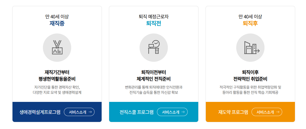 정년을 맞은 근로자가 계속 일할 수 있도록 돕는 고령자 계속 고용 장려금, 퇴직 이후 새로운 직무를 배우도록 돕는 중장년 경력지원제도 있습니다. 단순히 일자리를 찾는 것을 넘어, 새로운 경력을 쌓고 두 번째 커리어를 준비할 수 있도록 돕는 프로그램들이 마련되어 있습니다.