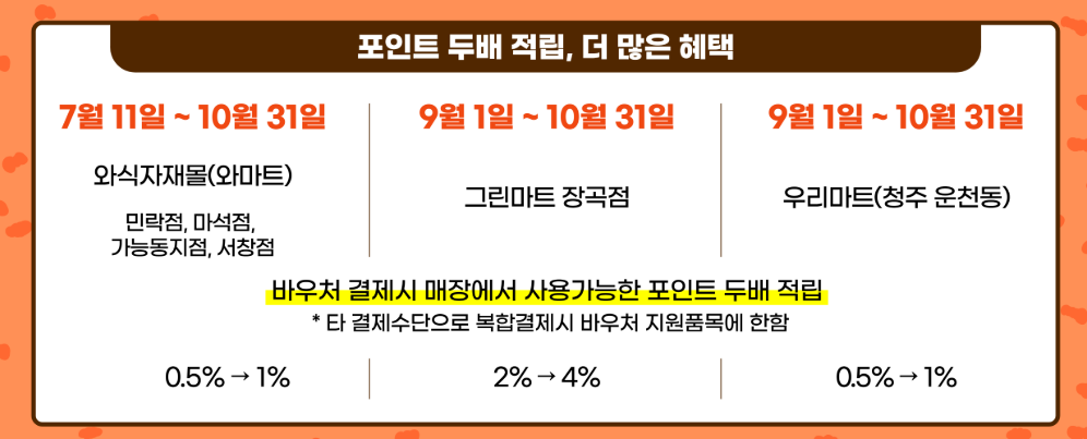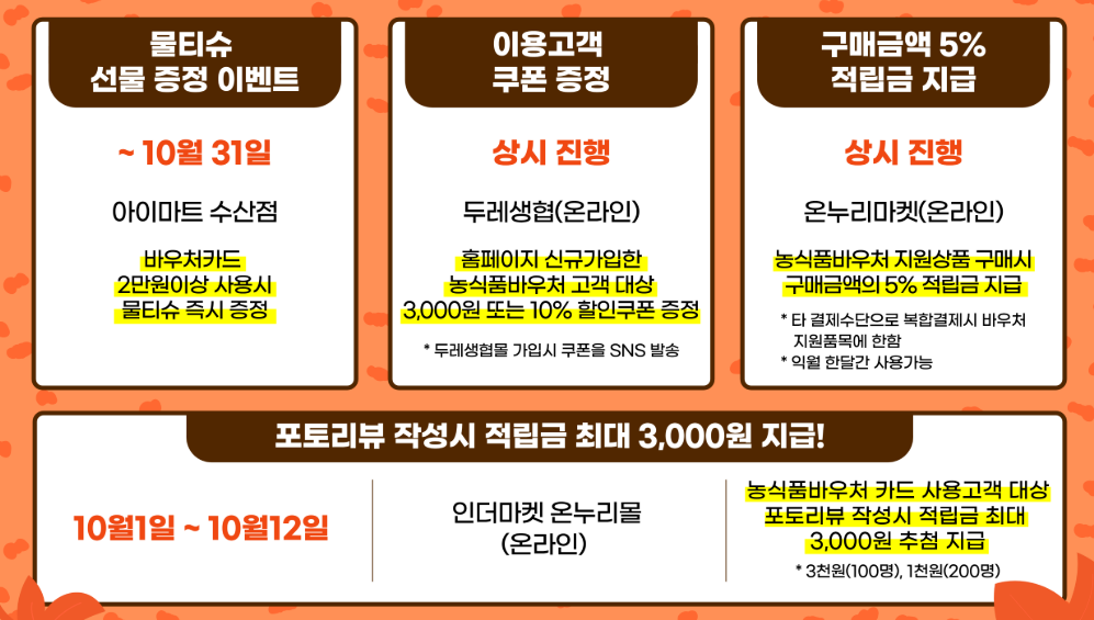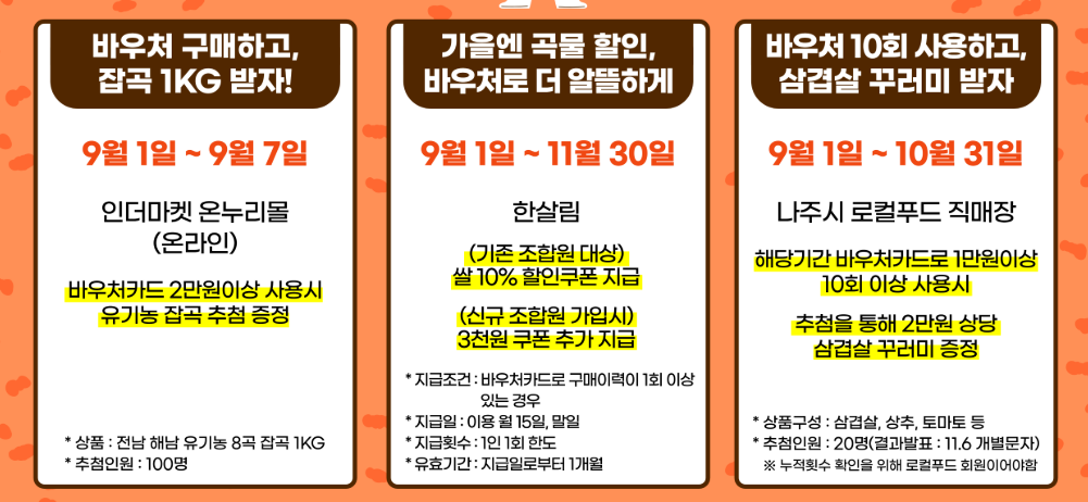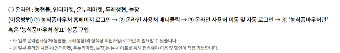 바우처를 통해 국산 농산물을 중심으로 신선하고 건강한 식품을 구매할 수 있고, 동시에 다양한 이벤트 혜택까지 누릴 수 있는 것은 큰 장점입니다. 특히 포인트 두 배 적립이나 할인 쿠폰 제공은 실제 가계 부담을 덜어주는 실질적인 효과가 있습니다.