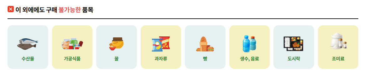 구매가능 품목과 구매불가 품목 살펴보기