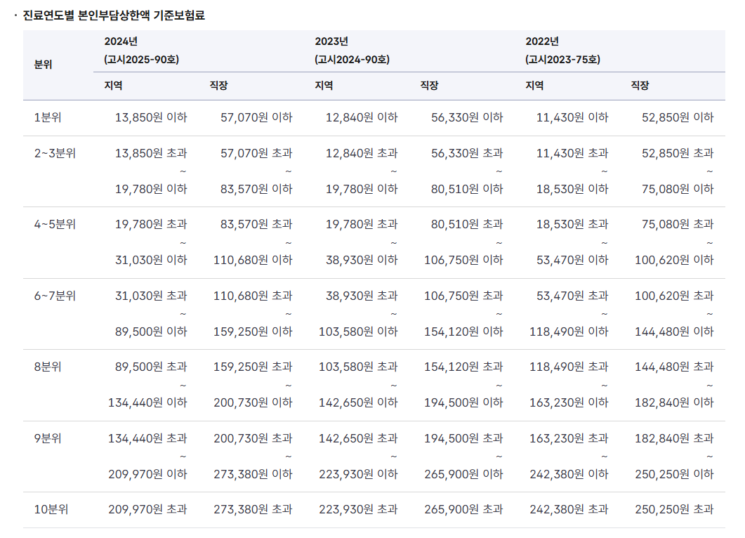 개인이 1년 동안 부담한 의료비가 소득 분위별 상한액을 초과할 경우